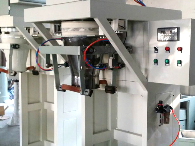 顆粒定量包裝秤工作原理:當自動定量包裝秤進入自動運行狀態后,稱重控制系統打開給料門開始加料,顆粒包裝秤給料裝置為快、慢兩級給料方式;當物料重量達到快給料設定值時,停止快給料,保持慢給料;當物料重量達到設定值時,關閉給料門,完成動態稱重過程。