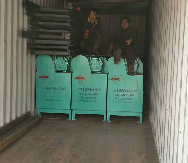 衡水隆昌豹牌造粒機械的工人師傅滿懷熱情的為廣西用戶裝車。廣西用戶購買了八臺豹牌對輥造粒機主機,工人師傅熱情的裝車。_近隆昌陸續的完成了各地的訂單,加班加點的追趕進度,__時間完成任務。